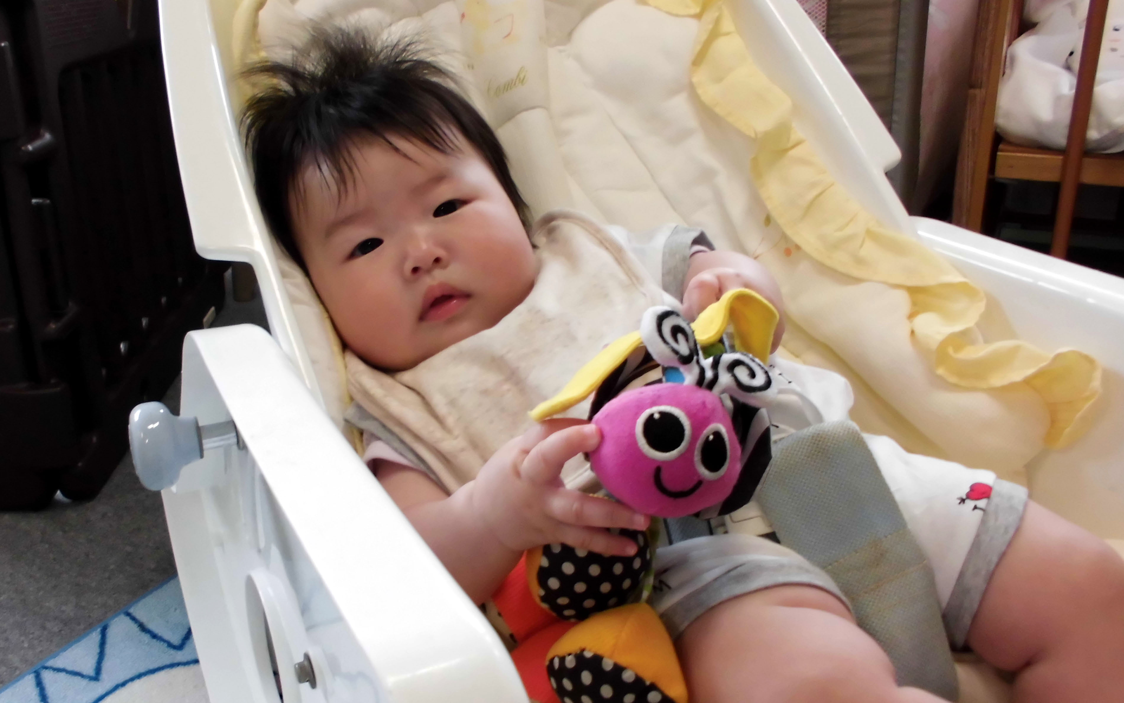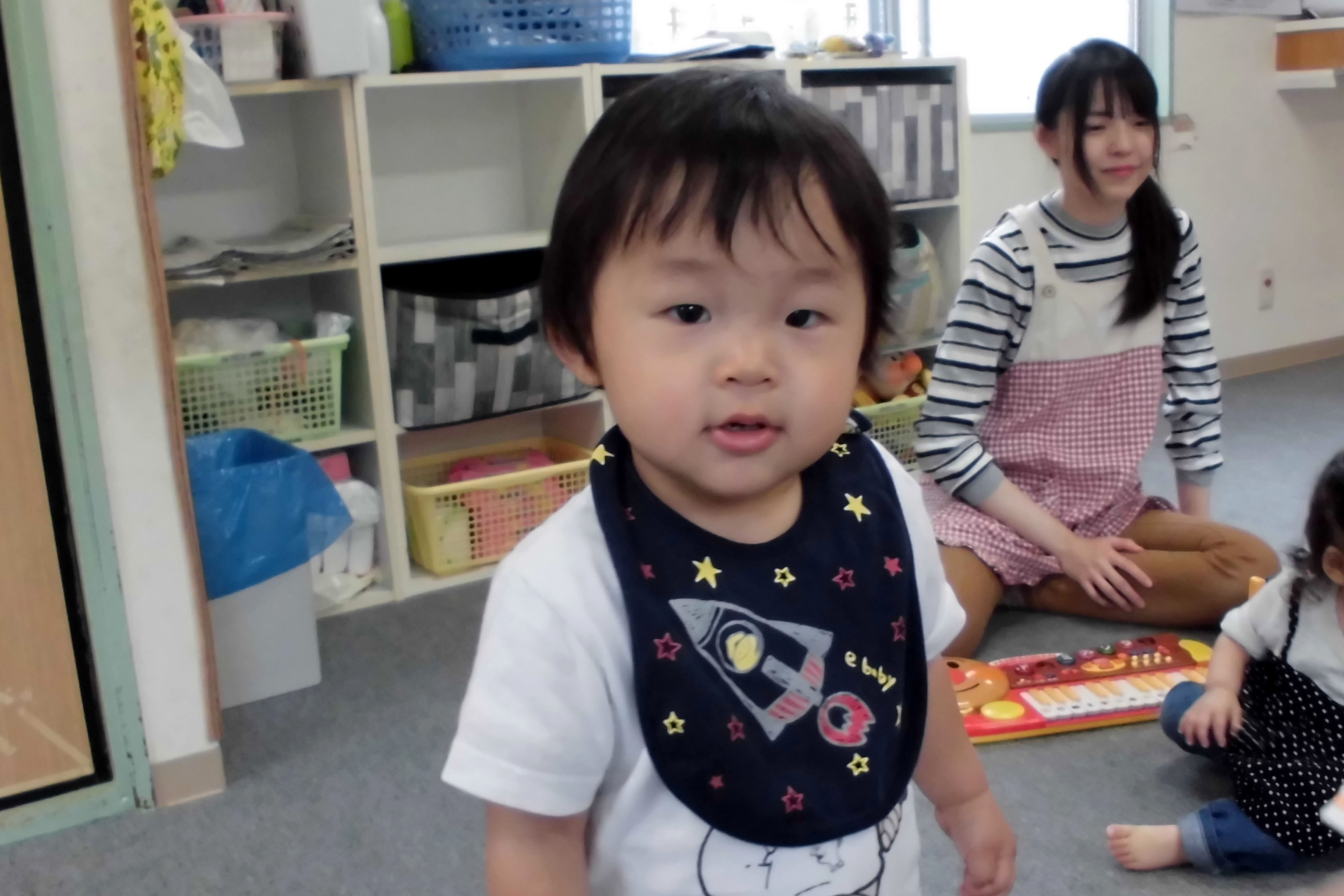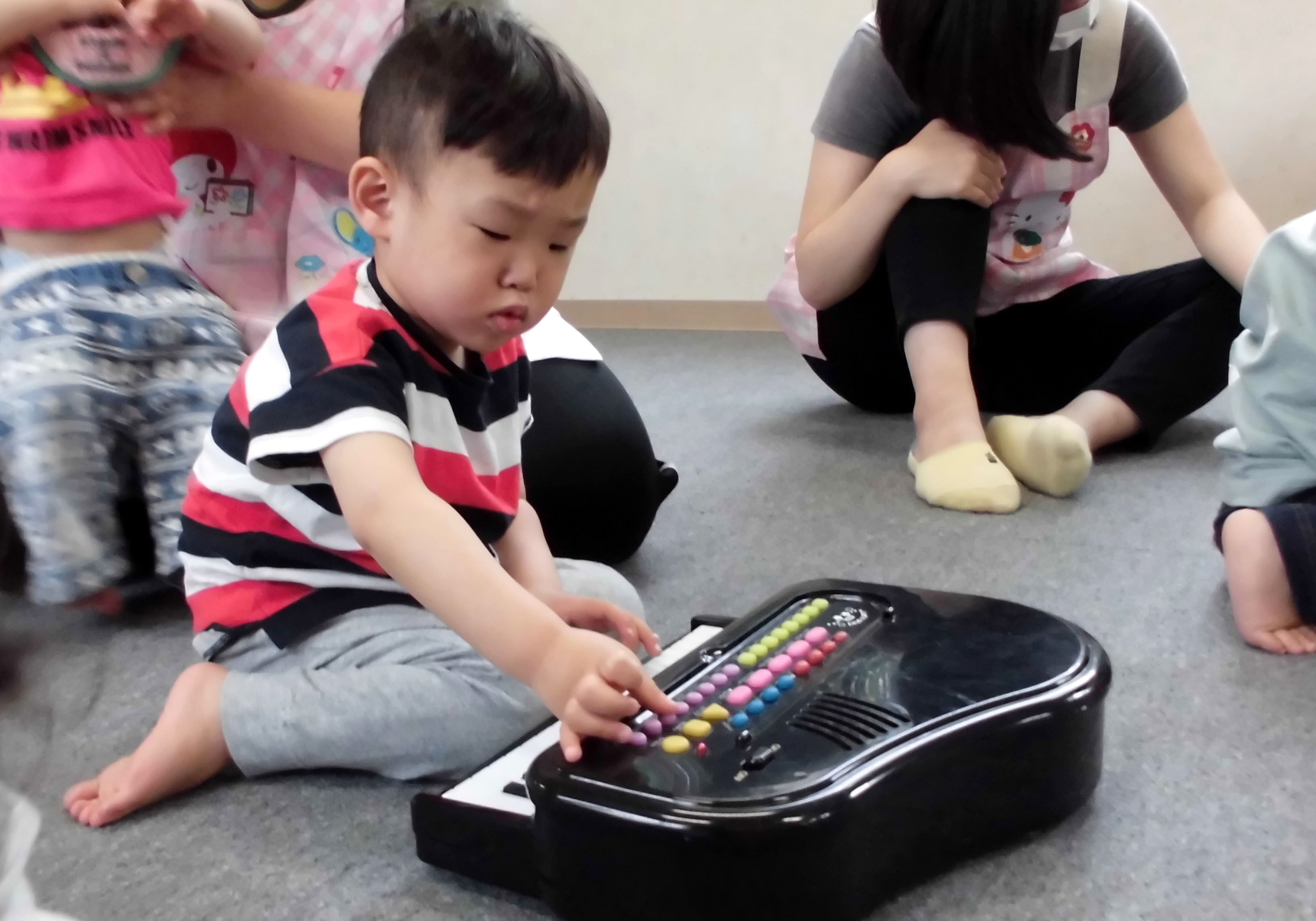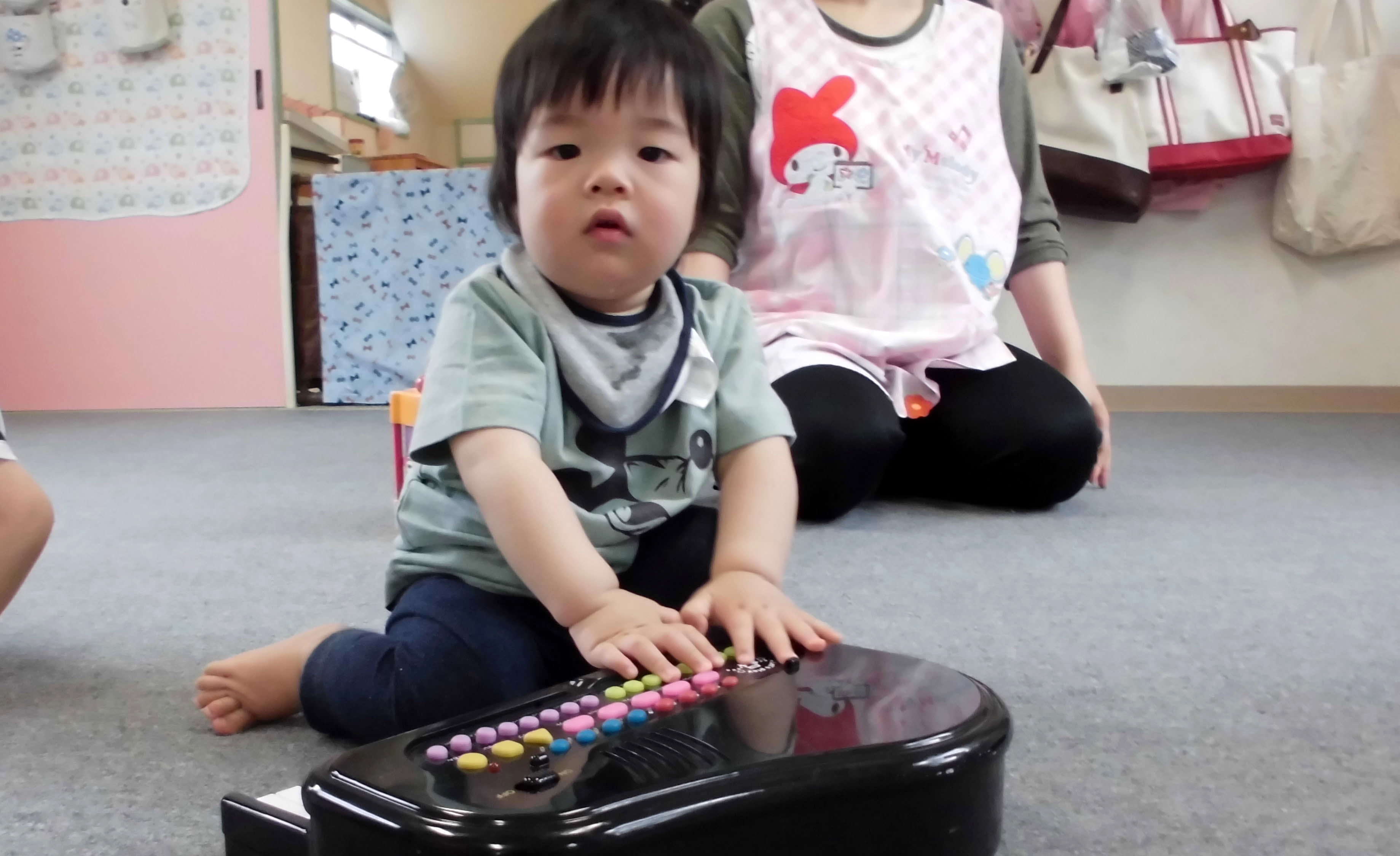 ひよこ組は保育室で電子楽器を使って