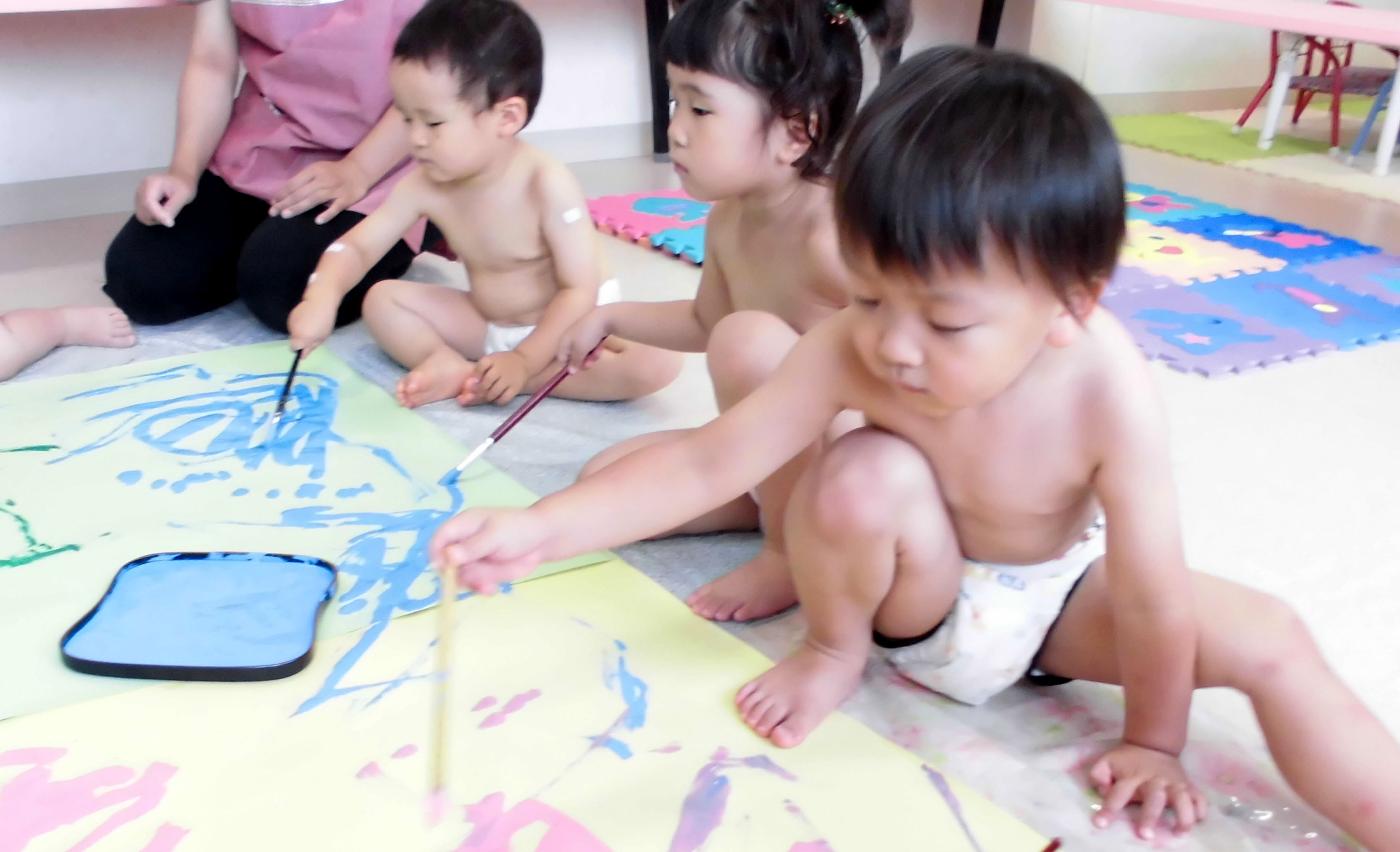 これも裸で開放的ですね(^^♪ひよこい組も沐浴を