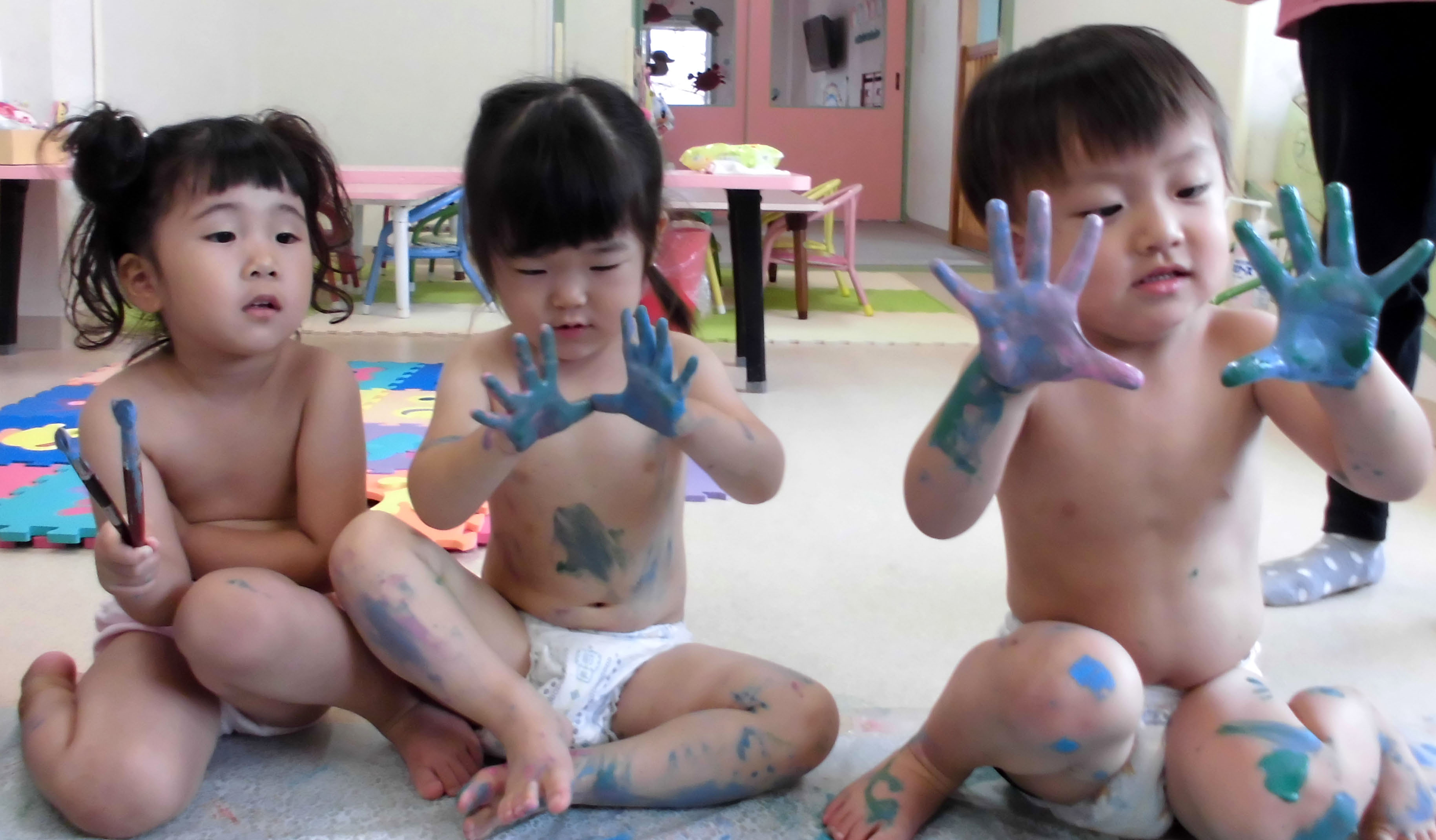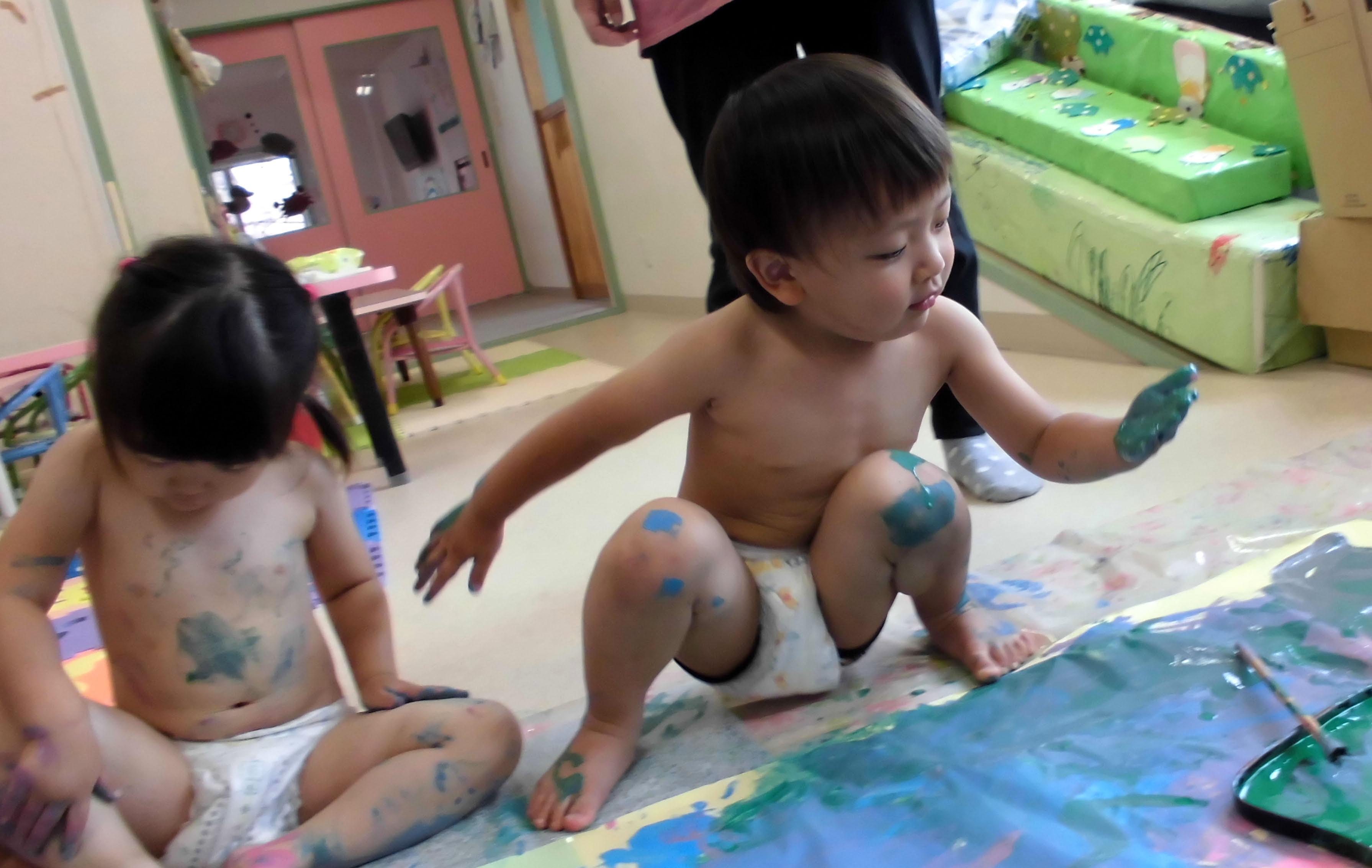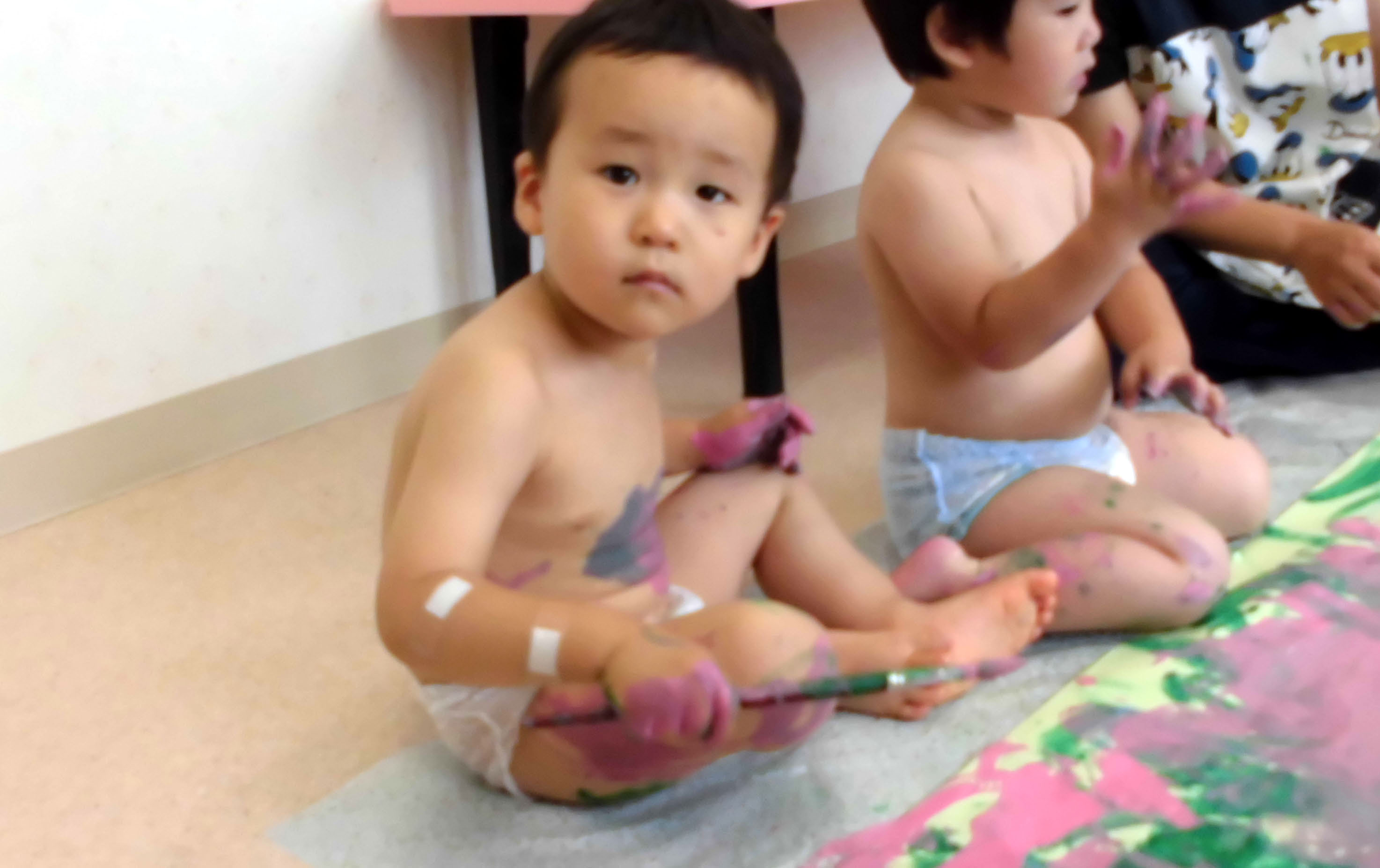 今日のアヒル組はボディーペインティングで大盛り上がり