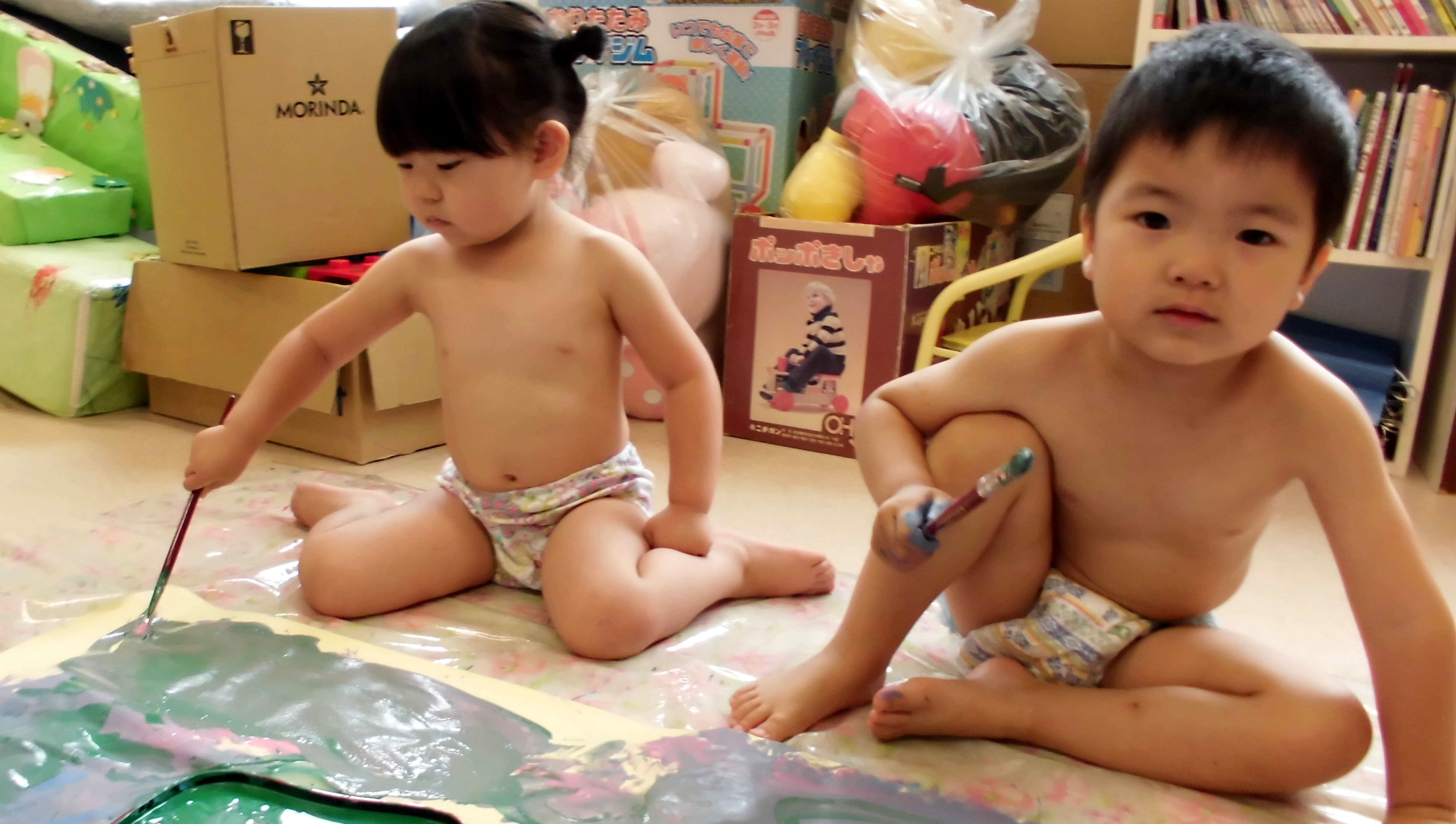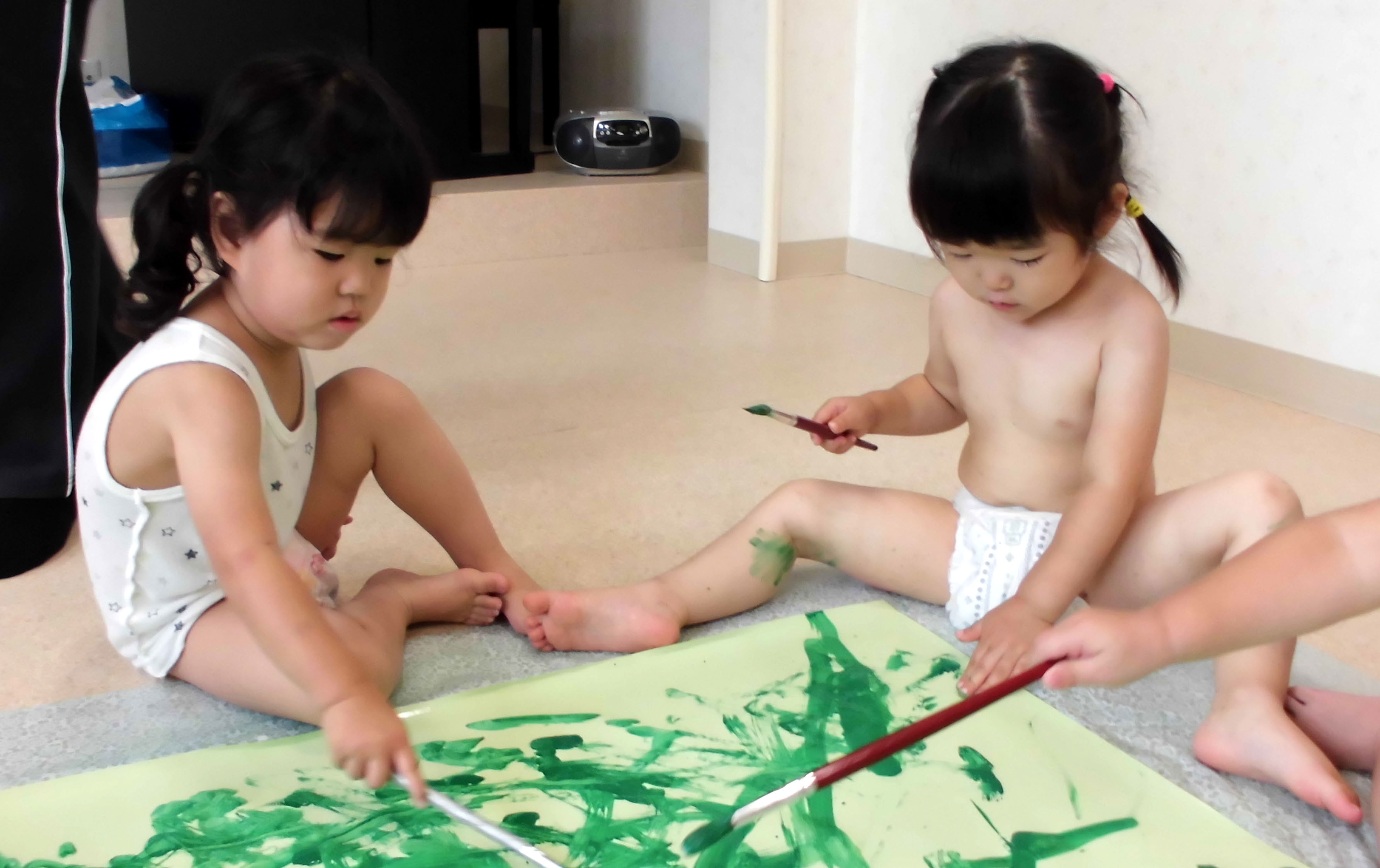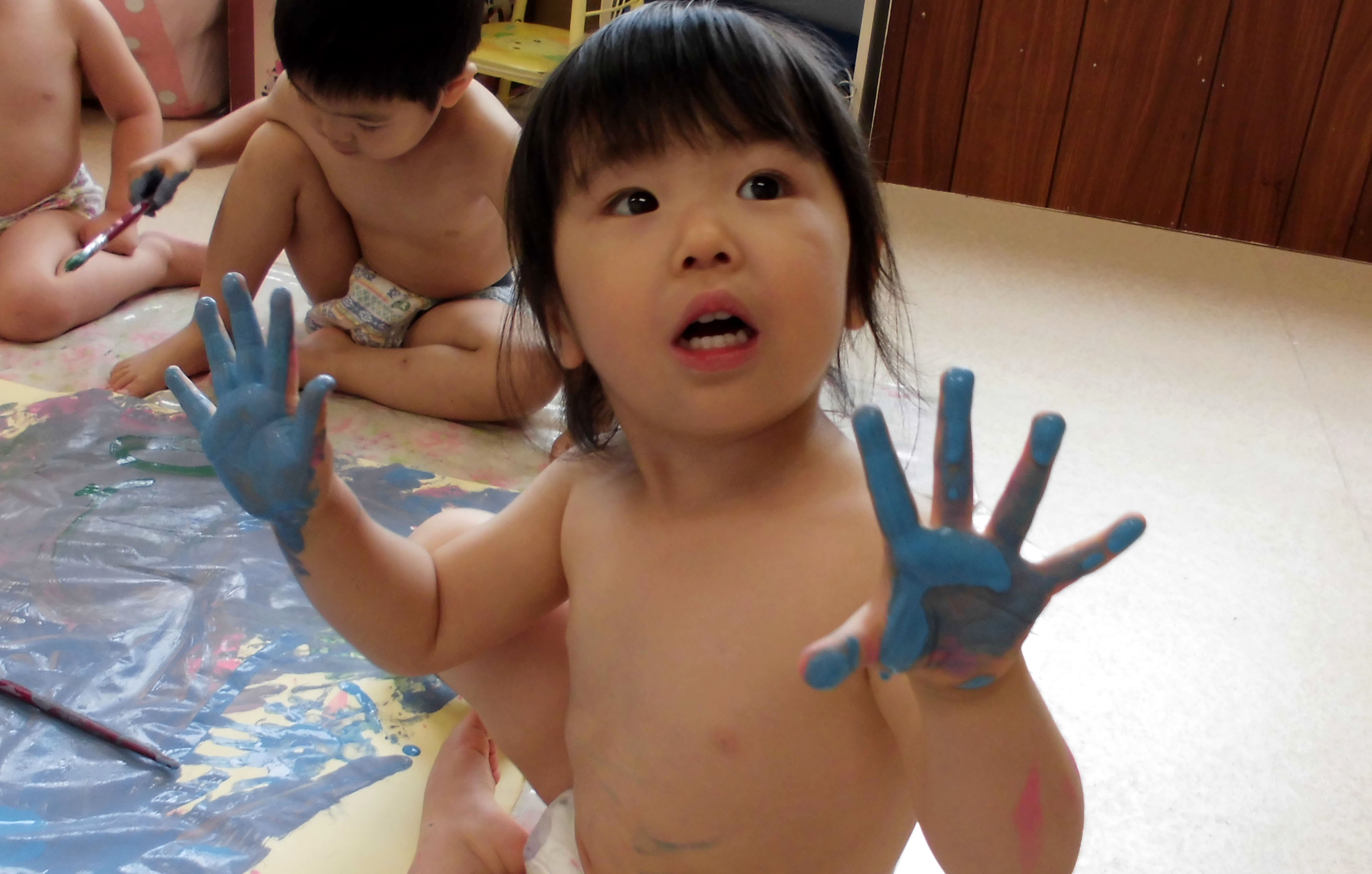 今日のアヒル組はボディーペインティングで大盛り上がり