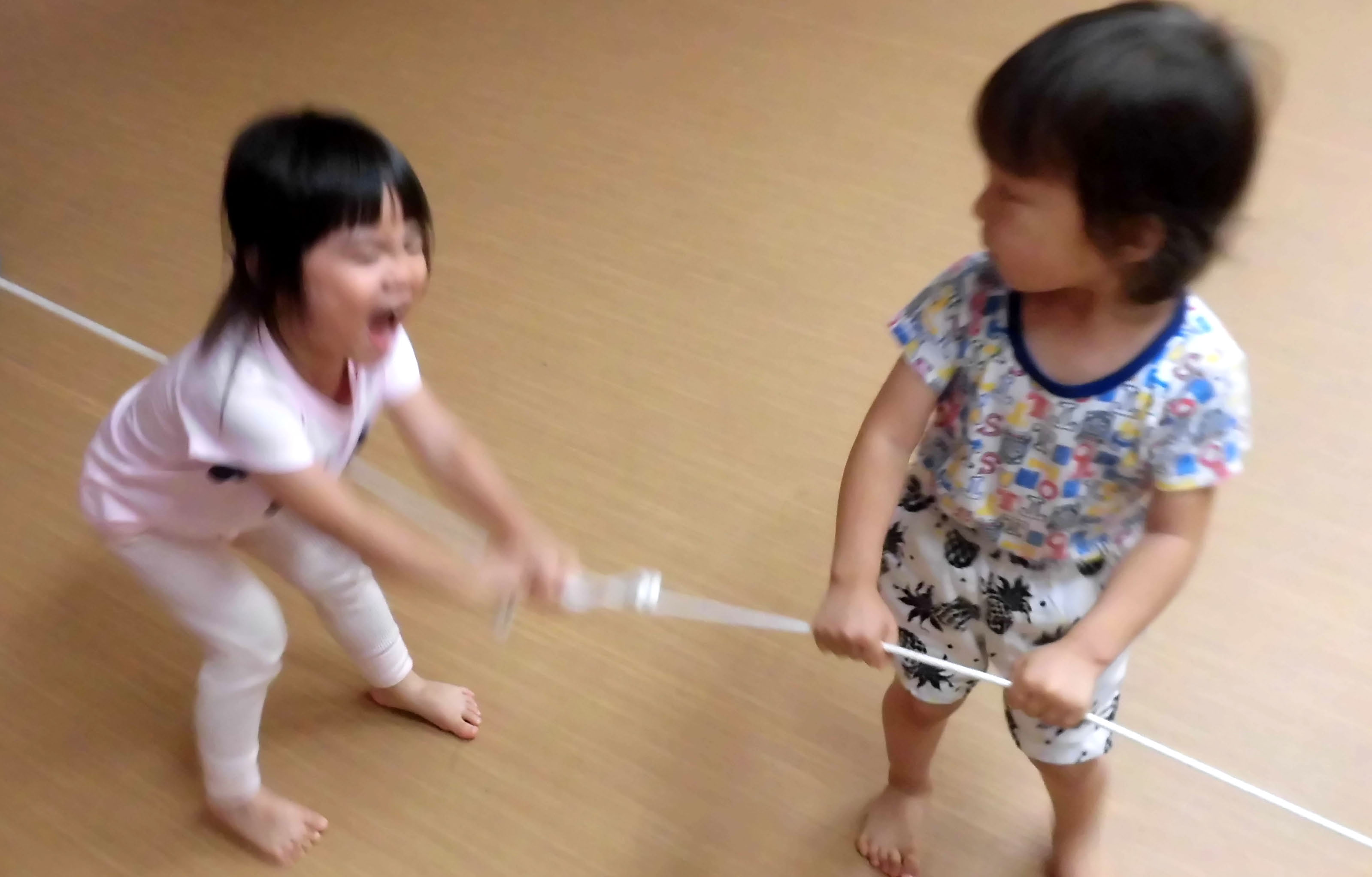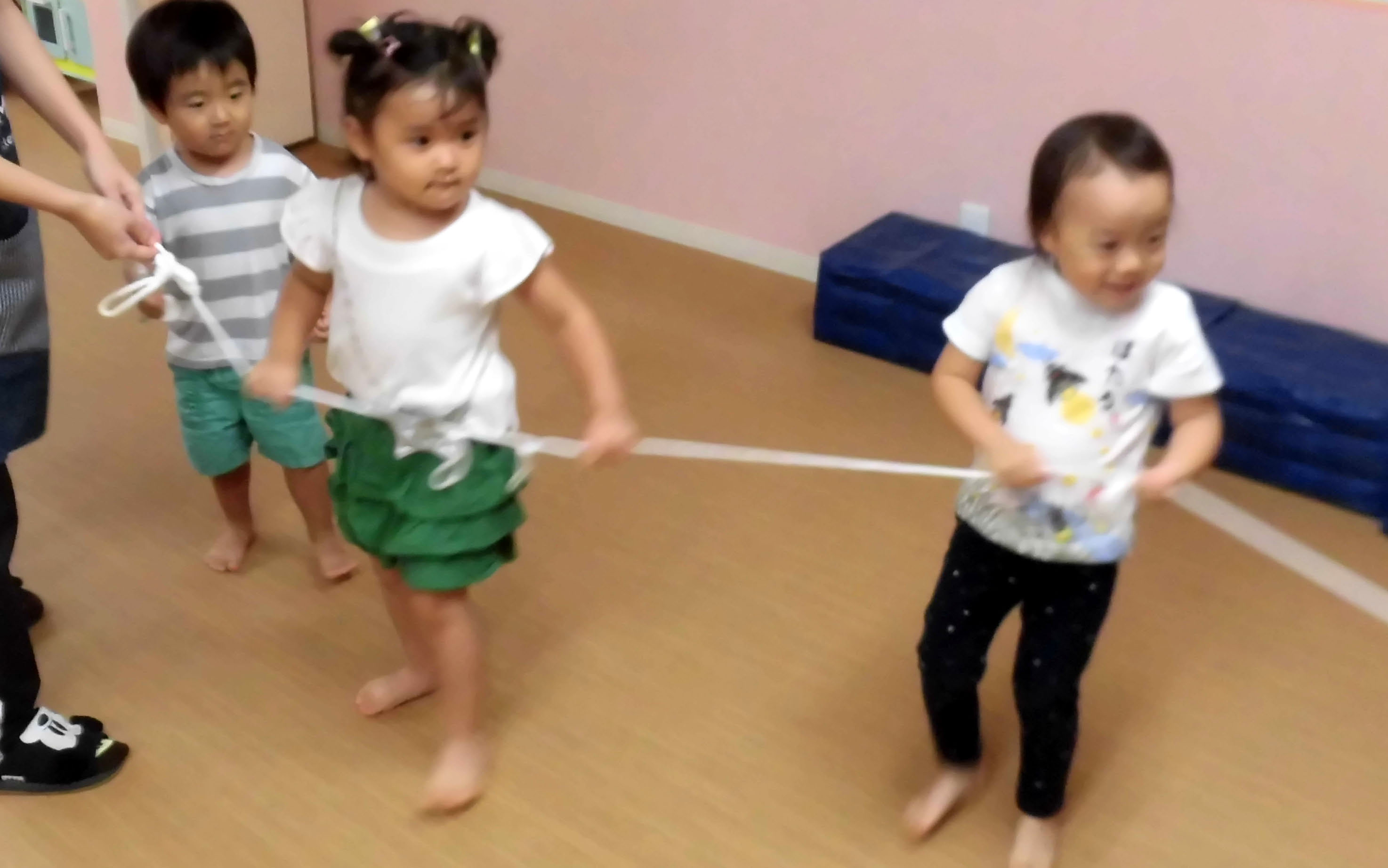 アヒル組はロープを使っていろんな遊びを