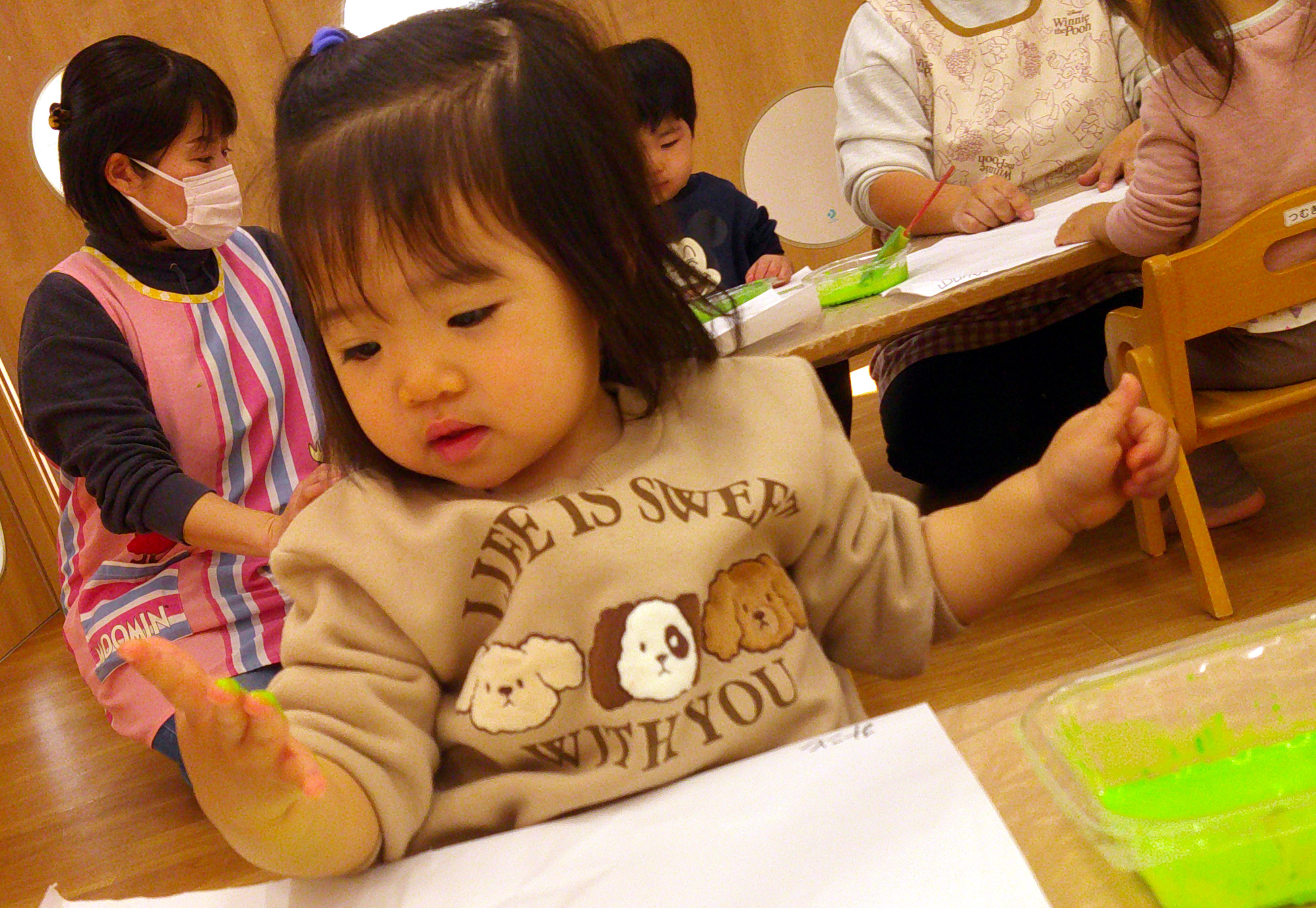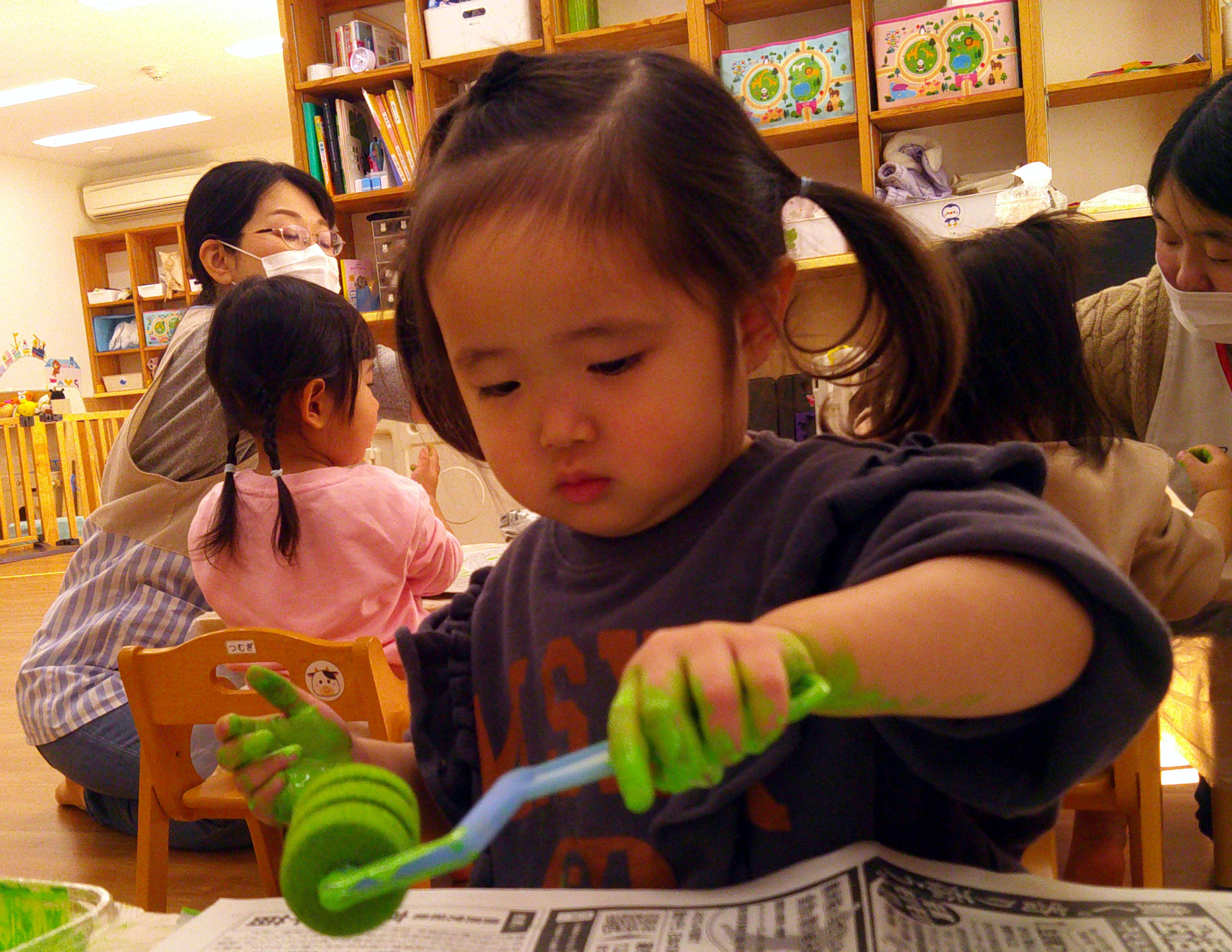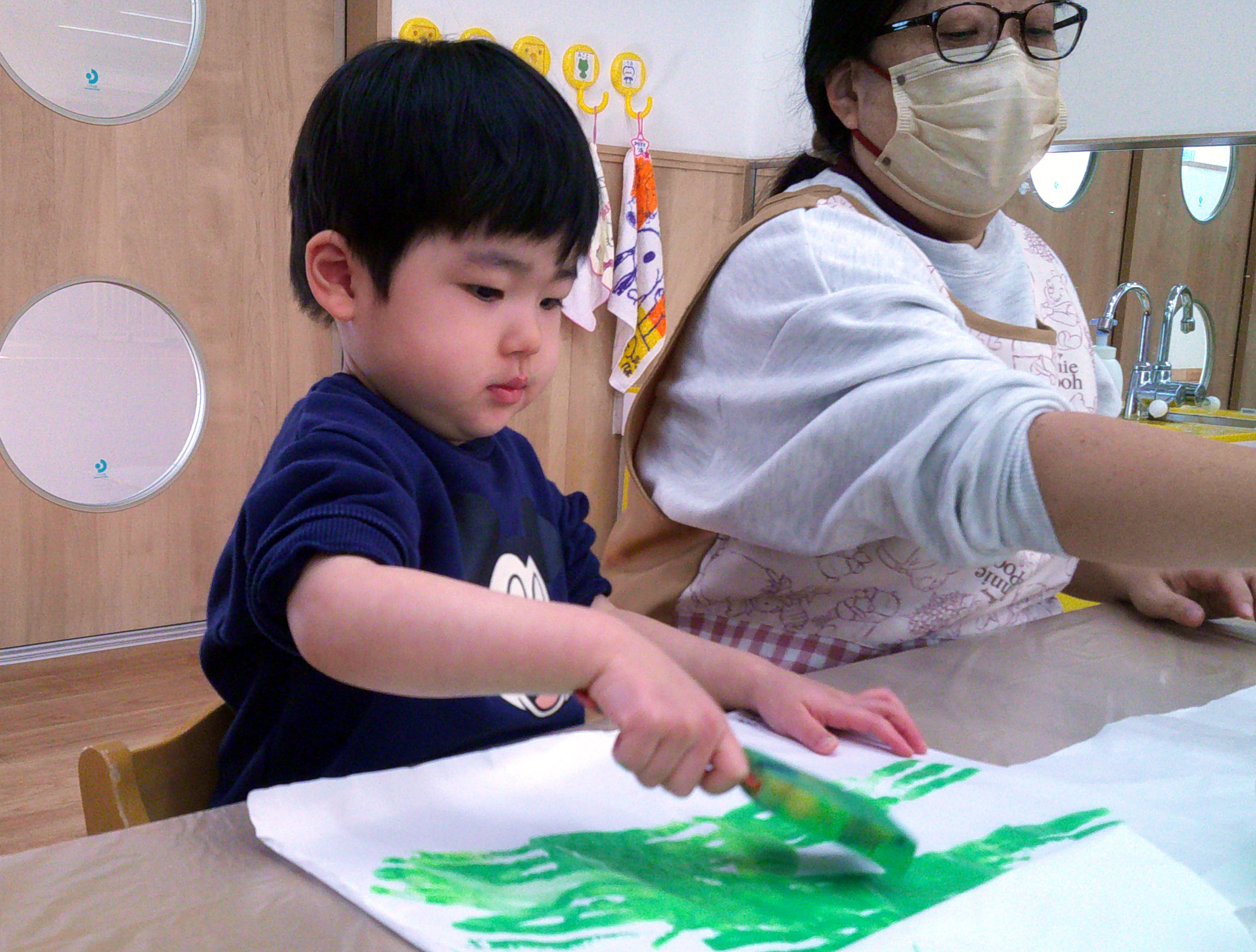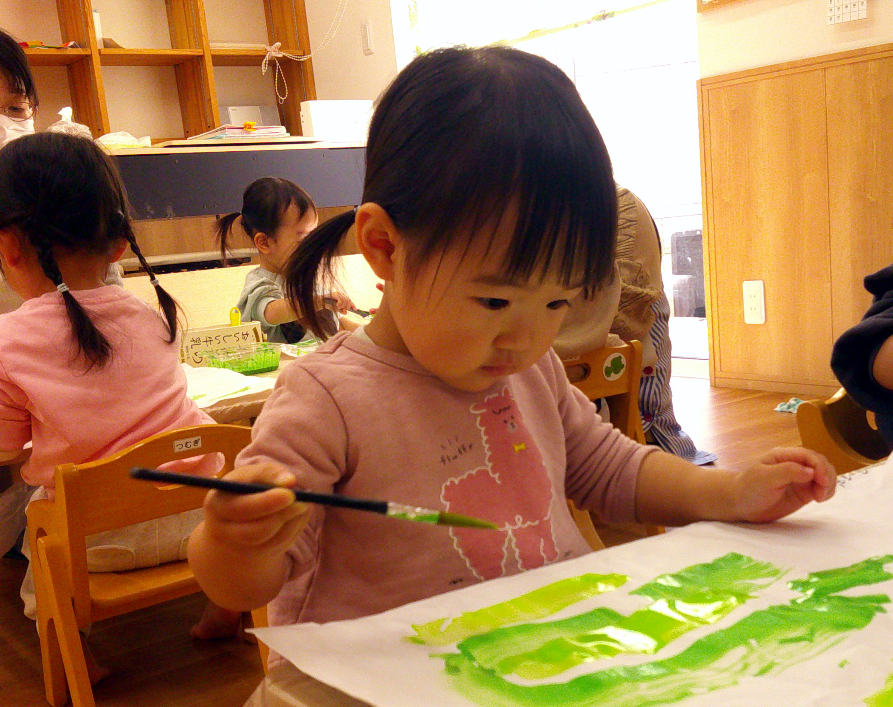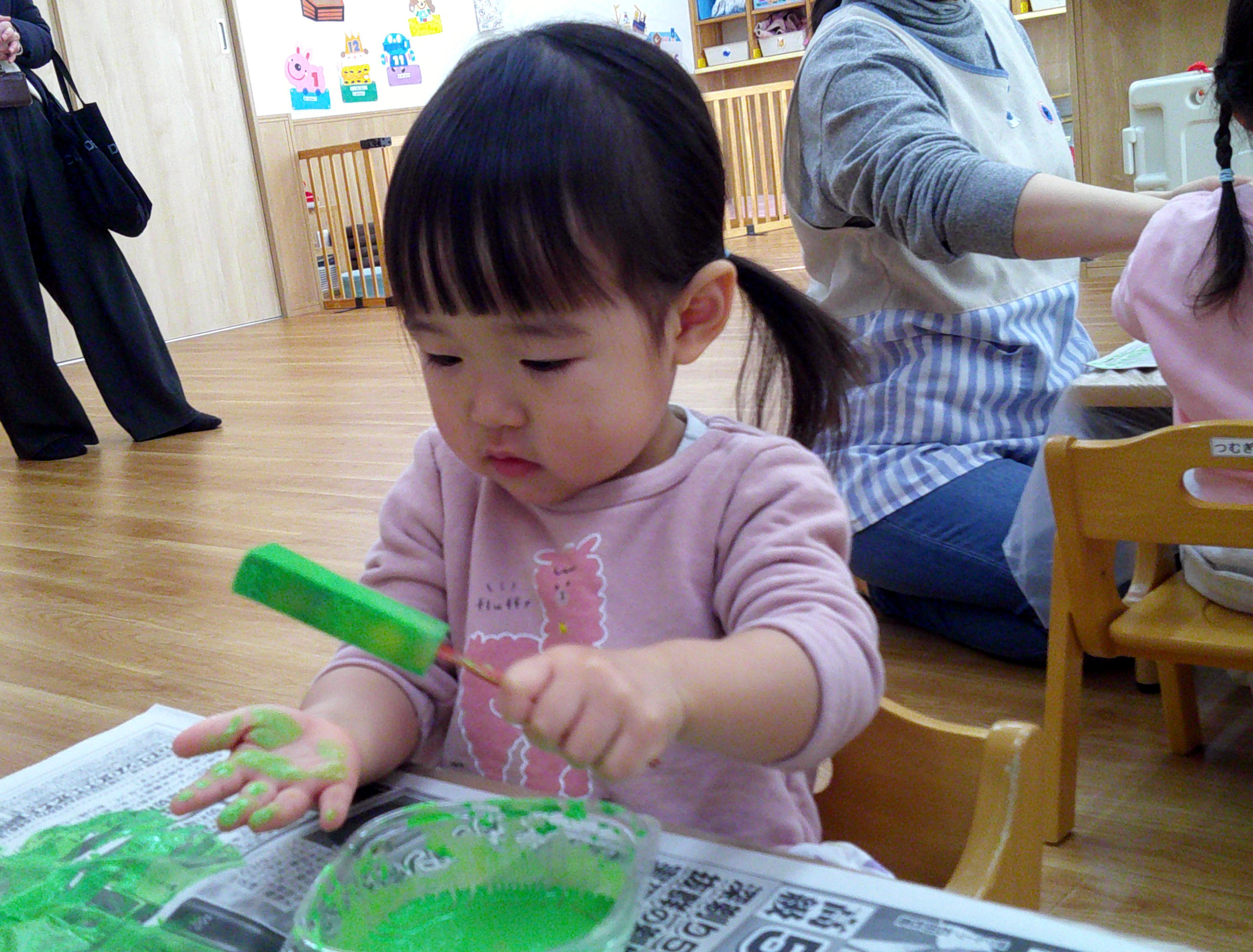 今日はひよこ組は絵具を使った